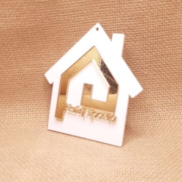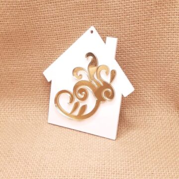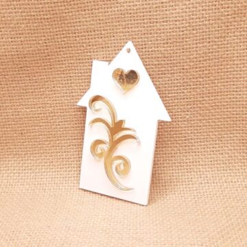 Σπίτι κρεμαστό 10cm σε plexiglass με μαίανδρο χρυσό