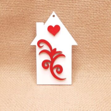 Σπίτι κρεμαστό 10cm σε plexiglass με φλοράλ
