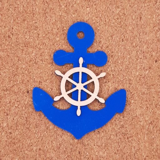 Άγκυρα με τιμόνι διπλό διάτρητο 6,5χ8cm σε κόντρα πλακέ σημύδα πάχους 3mm βαμμένο.
