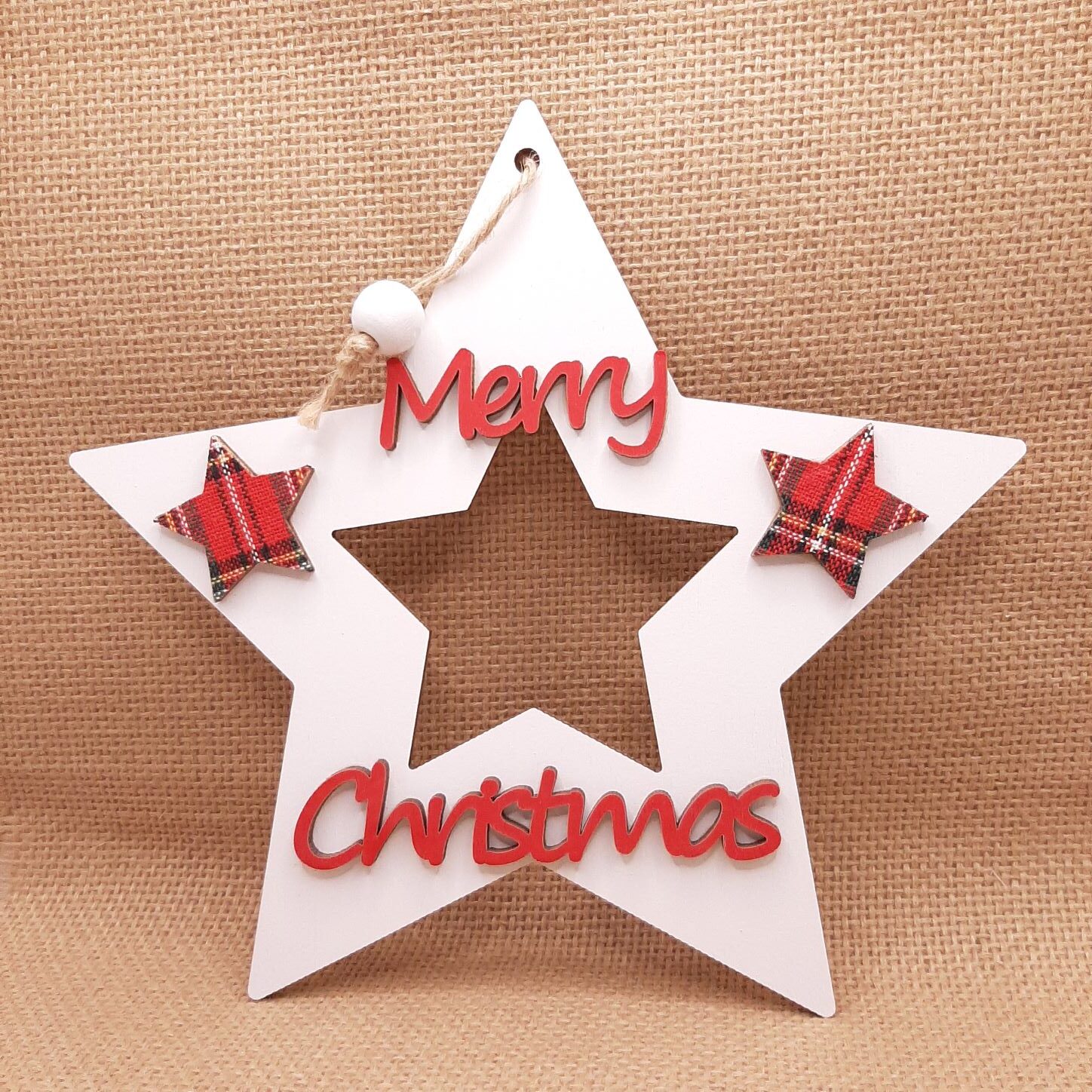 Αστέρι βαμμένο 20χ20cm Merry Christmas , σε κόντρα πλακέ σημύδα πάχους 3mm