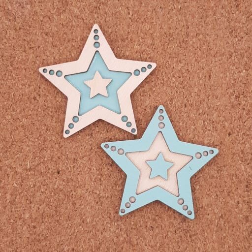 Αστέρι διάτρητο, διάστασης 6×6cm διπλό, βαμμένο σε κόντρα πλακέ σημύδα πάχους 3mm.