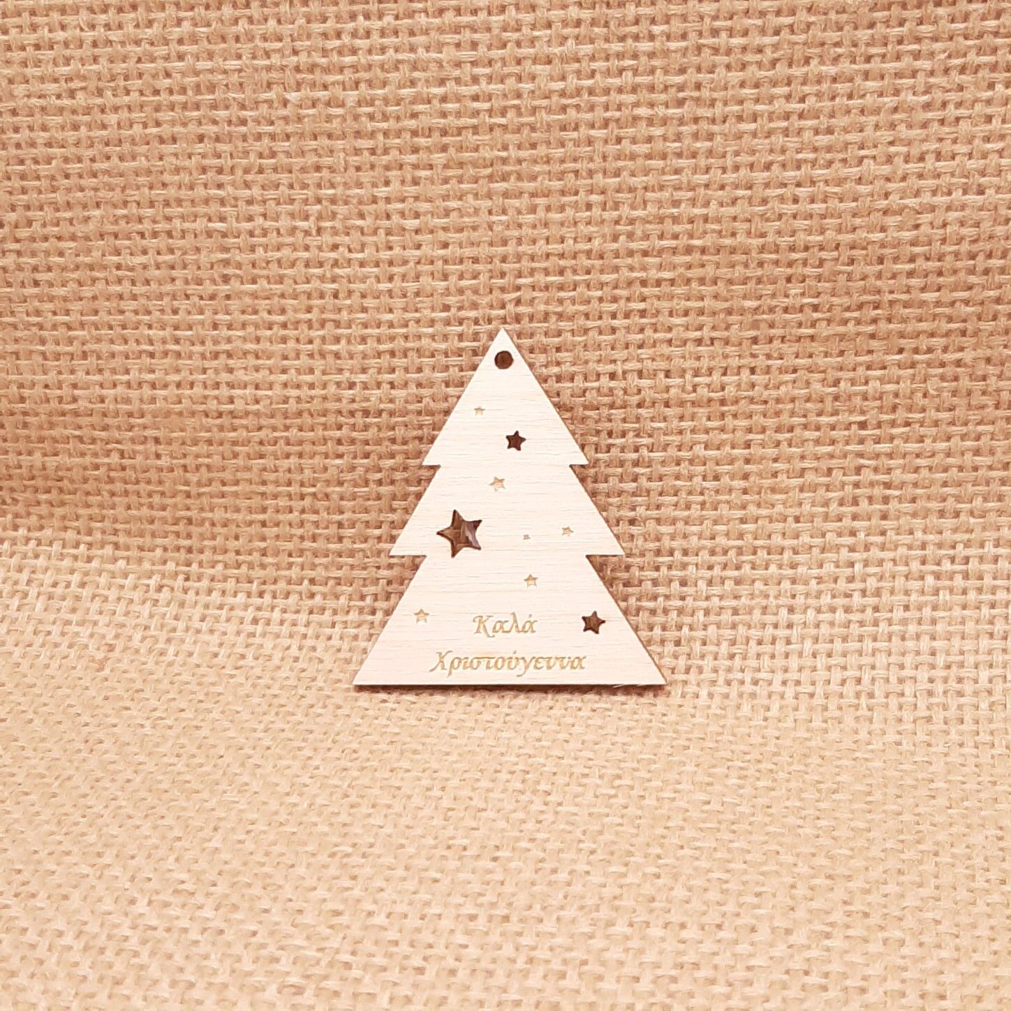 Δέντρο με χάραξη “ΚΑΛΑ ΧΡΙΣΤΟΥΓΕΝΝΑ” , σε ξύλο κόντρα πλακέ σημύδα πάχους 3mm