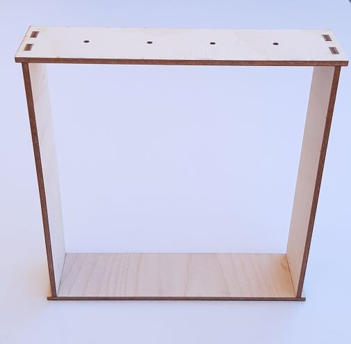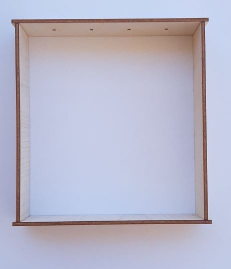 Επιτραπέζια κορνίζα 15χ15χ3,6cm με τρύπες σε μία πλευρά σε κόντρα πλακέ σημύδα πάχους 3mm.