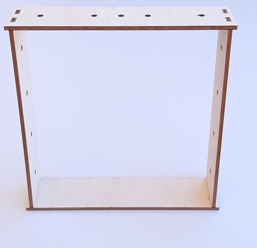 Επιτραπέζια κορνίζα 15χ15χ3,6cm με τρύπες στις 3 πλευρές σε κόντρα πλακέ σημύδα πάχους 3mm.