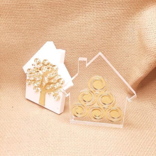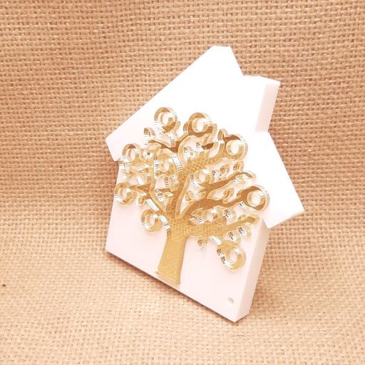 Επιτραπέζιο σπίτι 10cm σε plexiglass πάχους 1cm με δέντρο σε χρυσό καθρέφτη – 2 σχέδια