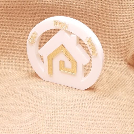 Επιτραπέζιο σπίτι 10cm σε plexiglass πάχους 1cm με ευχές σε χρυσό καθρέφτη