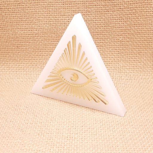 Επιτραπέζιο τρίγωνο 10cm σε plexiglass πάχους 1cm με μάτι σε χρυσό καθρέφτη