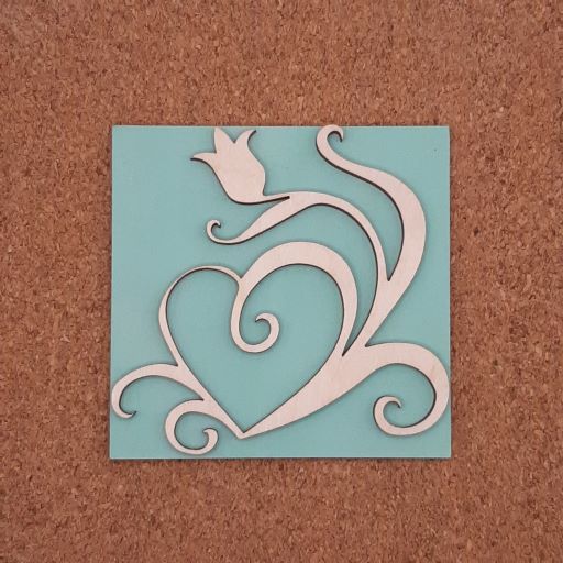 Καδράκι -καρδιά με λουλούδι διάστασης 9χ9cm, διπλό βαμμένο ,σε ξύλο σημύδα πάχους 3mm