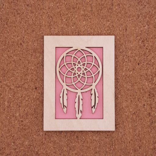Καδράκι -ονειροπαγίδα διάστασης 6χ8cm, διπλό βαμμένο ,σε ξύλο σημύδα πάχους 3mm