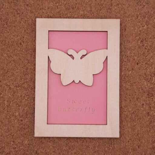 Καδράκι -πεταλούδα διάστασης 7χ10cm, διπλό βαμμένο ,σε ξύλο σημύδα πάχους 3mm