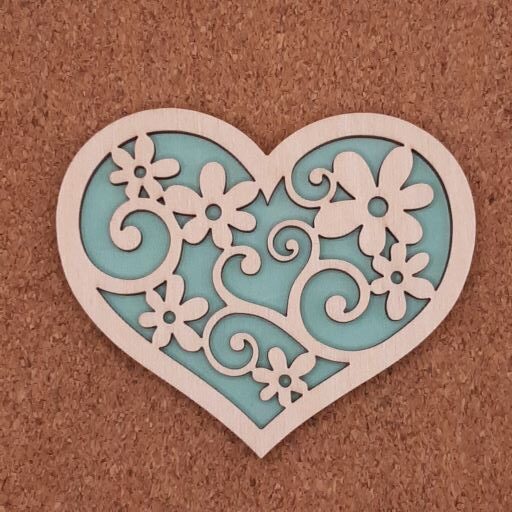 Καρδιά φλοράλ διάτρητη ,διπλή  9χ7,5cm ,σε ξύλο κόντρα πλακέ σημύδα πάχους 3mm βαμμένο