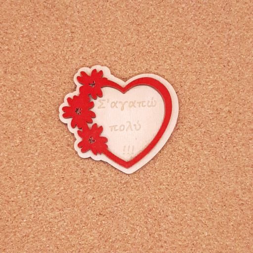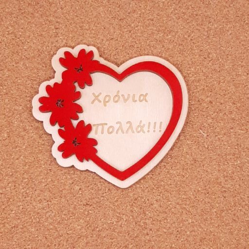 Καρδιά-στεφάνι διάστασης 8χ8cm διάτρητη ,με ευχή χαραγμένη σε κόντρα πλακέ συμήδα πάχους 3mm