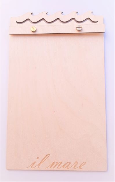 Κατάλογος-κύμα 28χ17cm με χάραξη επωνυμίας στο κάτω μέρος, σε κόντρα πλακέ σημύδα πάχους 3mm.