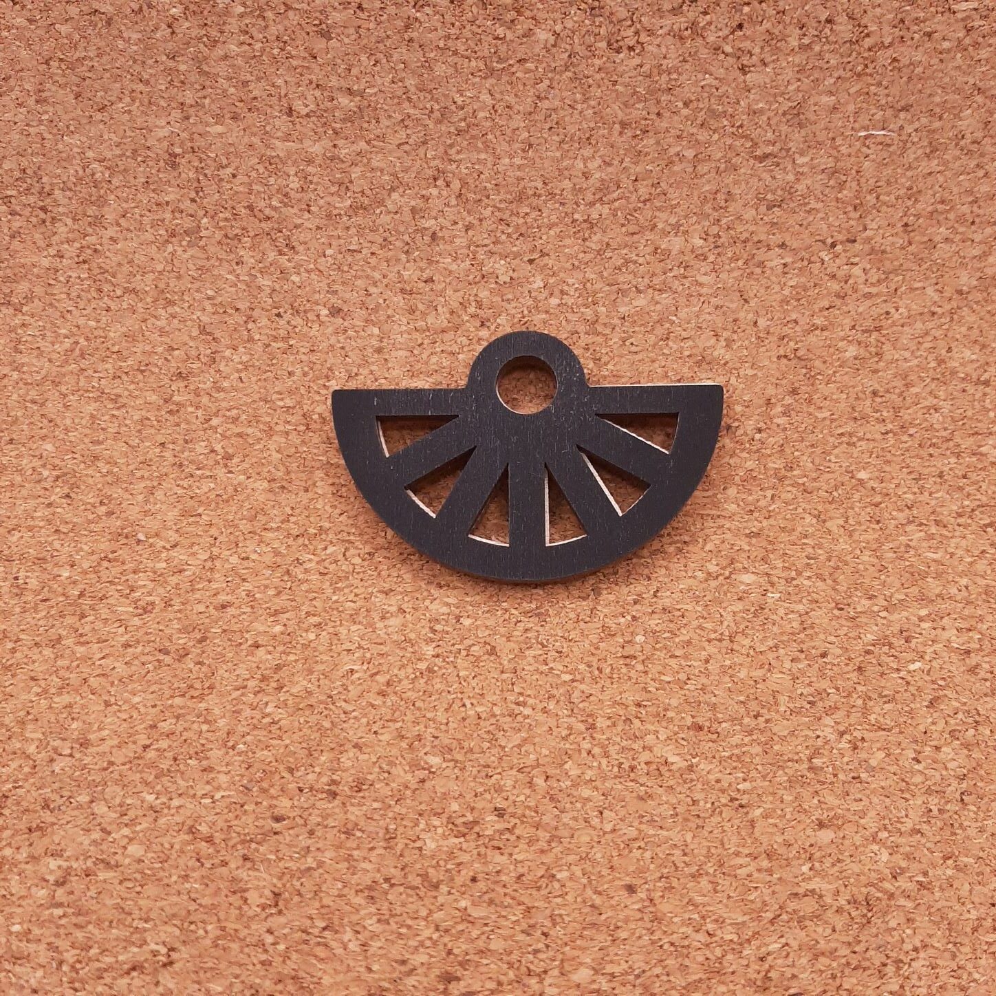 Κόσμημα ημικύκλιο 6,5χ4,5cm με διάτρητ0 ήλιο, βαμμένο,διπλής όψης σε κόντρα πλακέ σημύδα 3mm