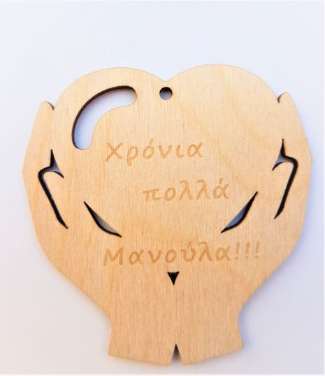 Κόσμημα καρδιά 7,5χ8cm και χάραξη αφιέρωσης “Χρόνια πολλά μανούλα” σε κόντρα πλακέ σημύδα 3mm