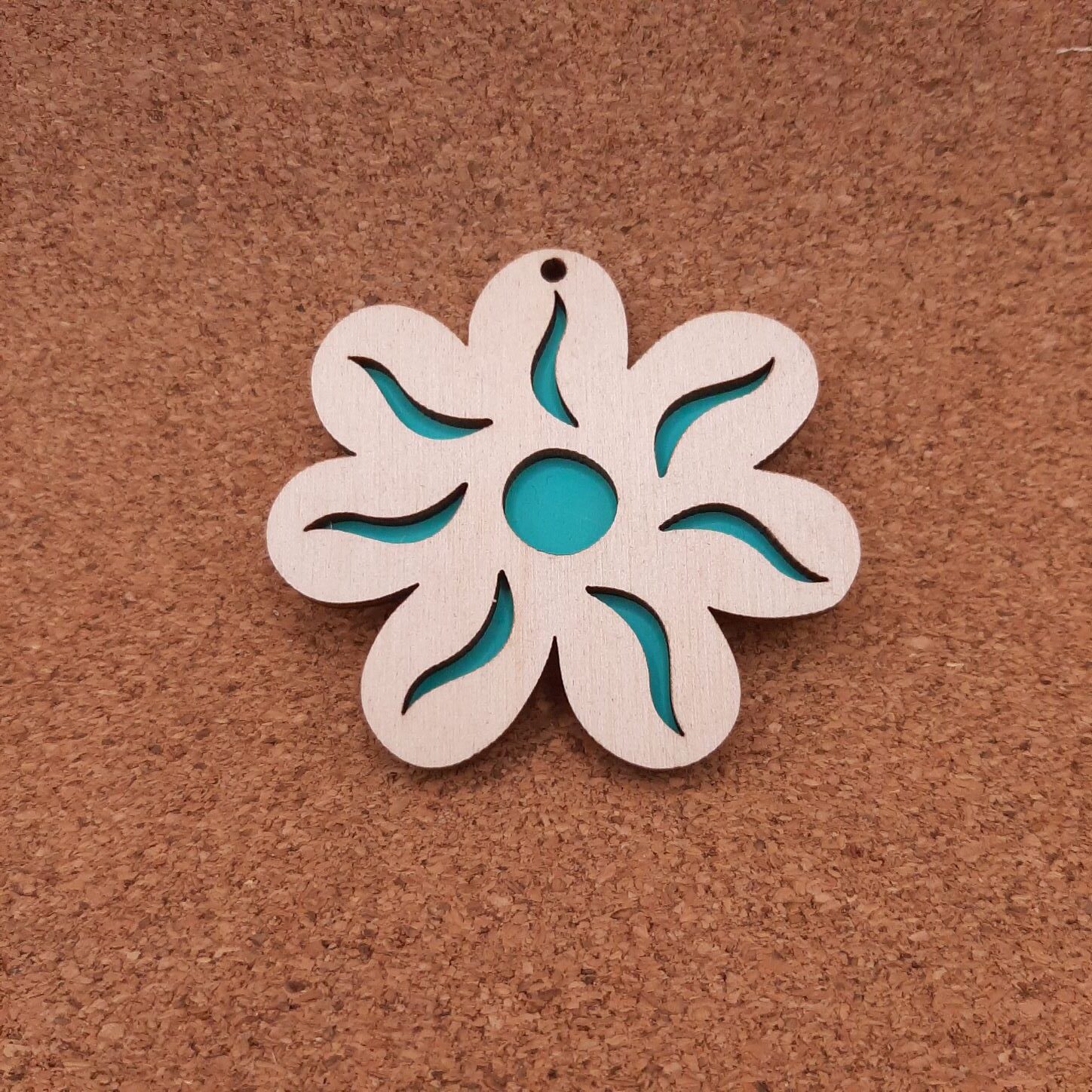 Κόσμημα λουλούδι  7χ6,5cm με βαμμένη πλάτη σε κόντρα πλακέ σημύδα 3mm