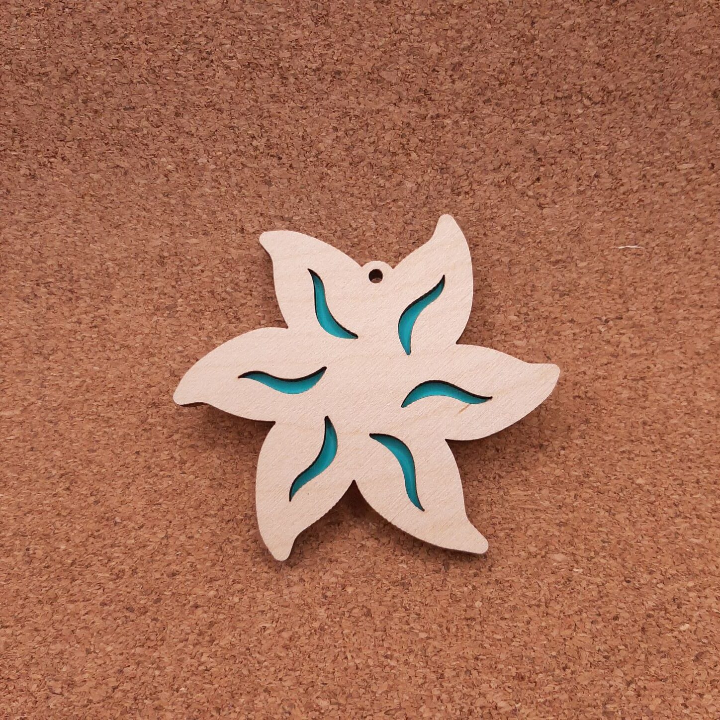 Κόσμημα λουλούδι 8,5χ8cm με βαμμένη πλάτη σε κόντρα πλακέ σημύδα 3mm