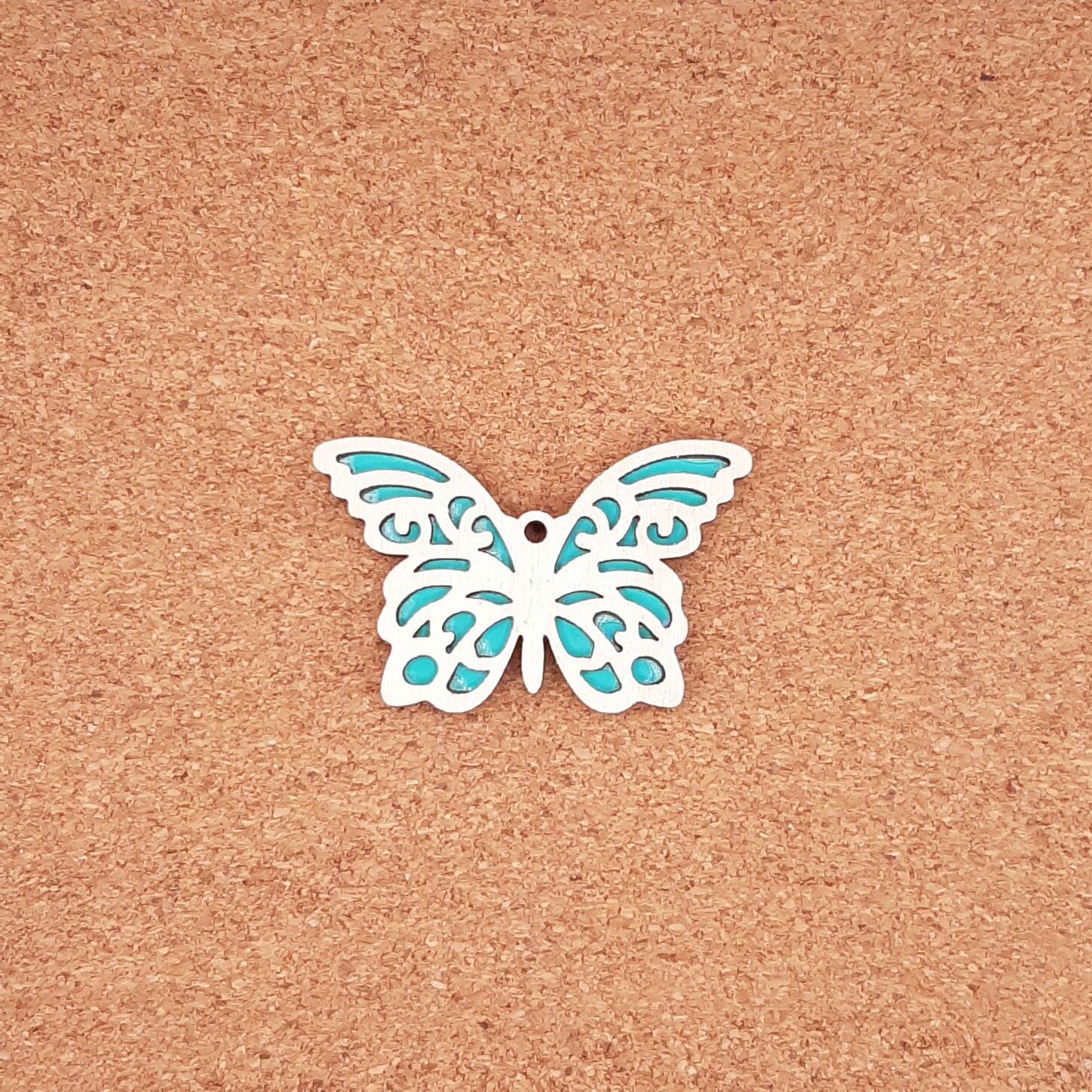 Κόσμημα πεταλούδα διάτρητη 7χ4,5cm διπλής όψης, βαμμένη σε κόντρα πλακέ σημύδα 3mm