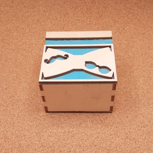 Κουτί μπομπονιέρας με ύφασμα, διάστασης 6,5×6,5x4cm, με παπιγιόν σε κόντρα πλακέ σημύδα πάχους 3mm.