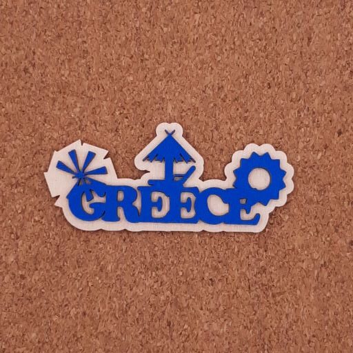 Μαγνητάκι Greece 8χ3cm, διάτρητο βαμμένο σε κόντρα πλακέ σημύδα πάχους 3mm