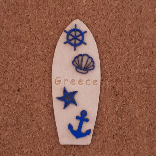 Μαγνητάκι σανίδα 3χ8cm,με χάραξη Greece σε κόντρα πλακέ σημύδα πάχους 3mm