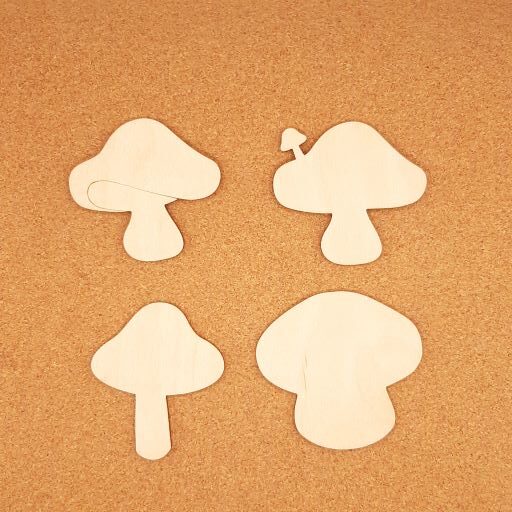 Μανιτάρια σε διάφορα σχέδια ύψους 6cm, σε ξύλο κόντρα πλακέ σημύδα πάχους 3mm