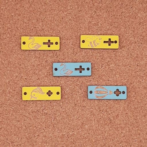 Τα υλικά που χρησιμοποιούμε για την κατασκευή των κοσμημάτων είναι κόντρα πλακέ σημύδα πάχους 3mm σε φυσικό ή βαμμένο , οκουμέ πάχους 4mm και ακρυλικό πάχους 1,8mm