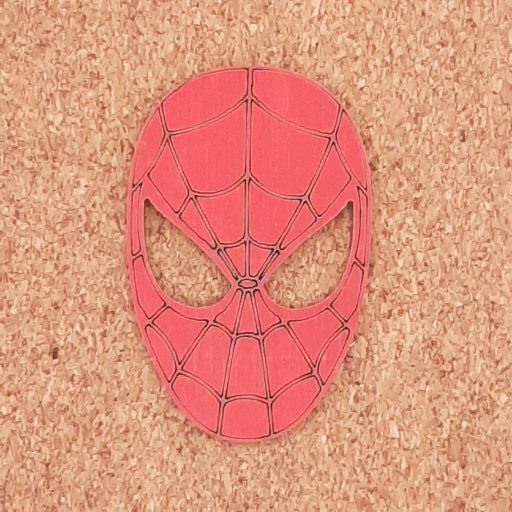Μάσκα Spiderman διάστασης 4x6cm με σκάλισμα, βαμμένο σε κόντρα πλακέ σημύδα πάχους 3mm.