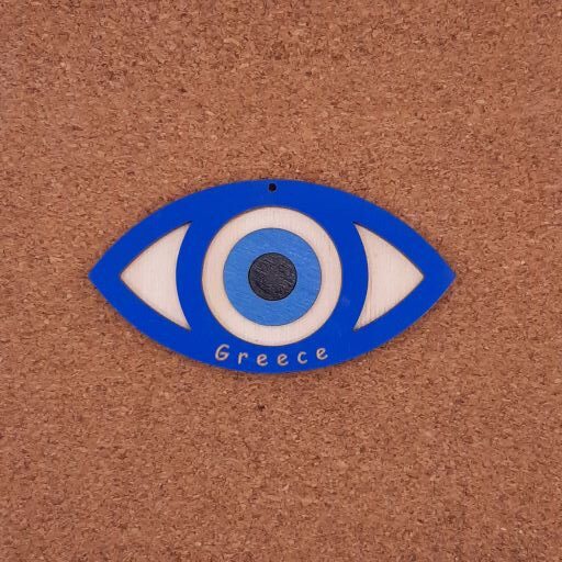 Μάτι οβάλ 10χ5cm διπλό βαμμένο με χάραξη, σε κόντρα πλακέ σημύδα πάχους 3mm. Υπάρχει δυνατότητα χάραξης της περιοχής σας.