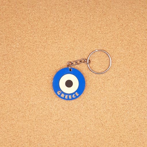Μπρελόκ-μάτι “GREECE” διάστασης 5cm, διπλό,βαμμένο σε κόντρα πλακέ σημύδα πάχους 3mm.
