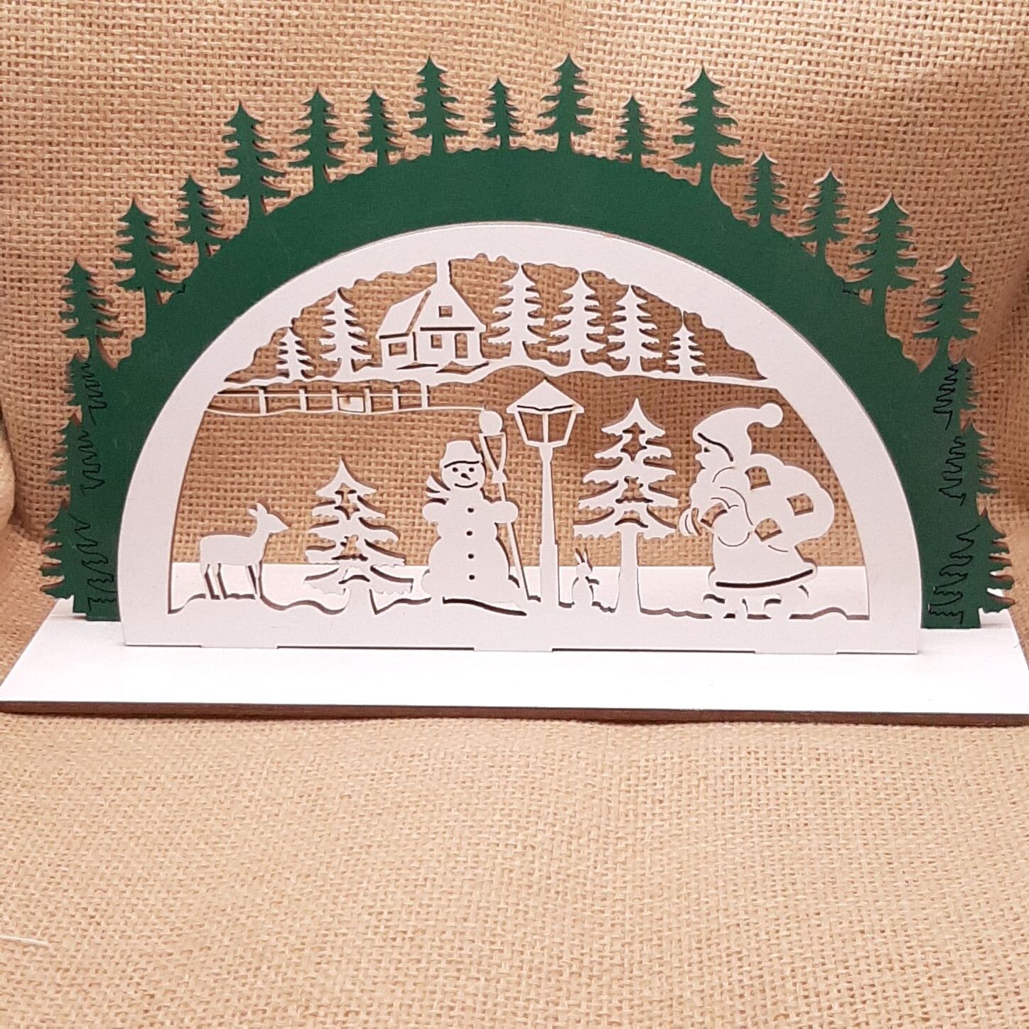 Παράσταση με δέντρα διπλή,βαμμένη με βάση σε κόντρα πλακέ σημύδα πάχους 3mm.