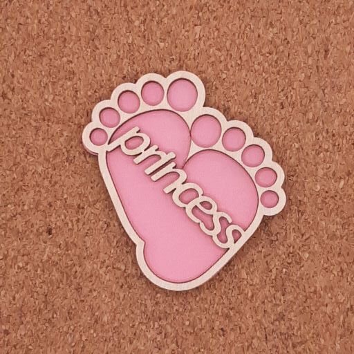 Πατουσάκι διπλό “princess” διάστασης 6X6cm ,σε ξύλο κόντρα πλακέ σημύδα πάχους 3mm βαμμένο