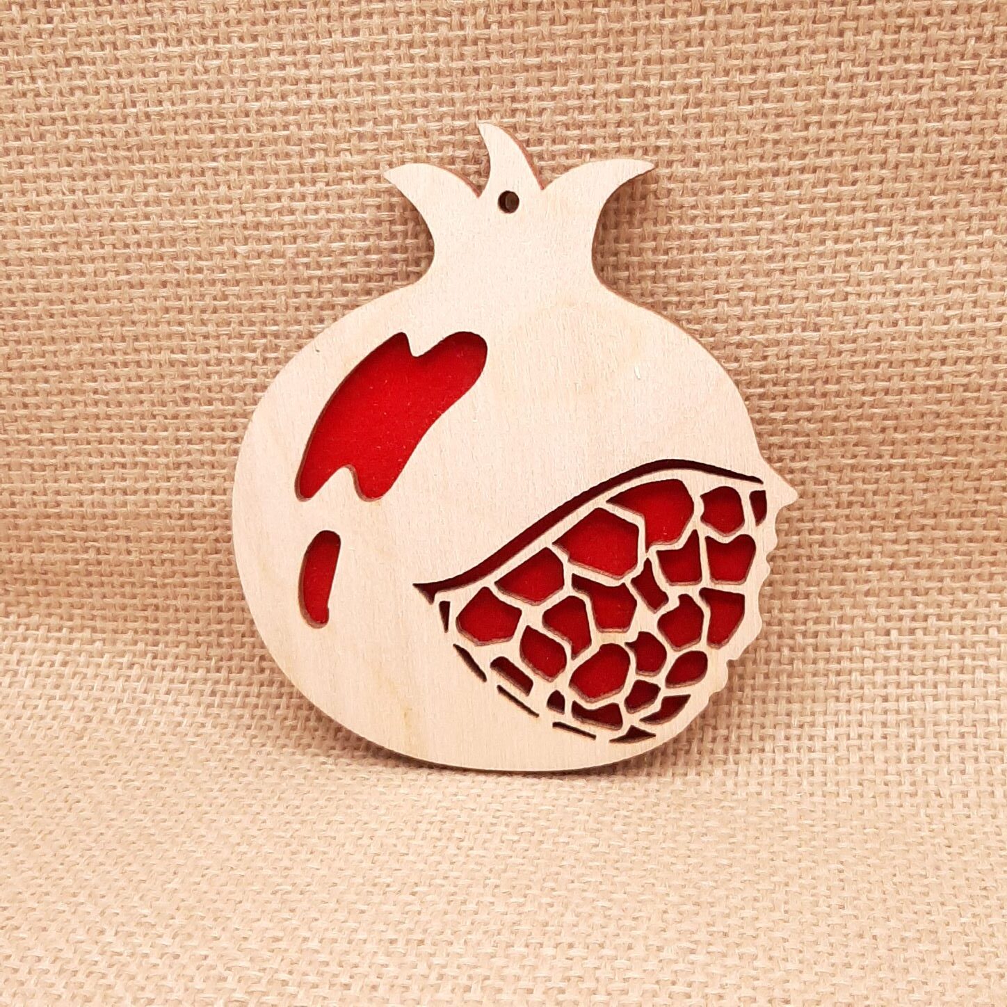 Ρόδι διάτρητο διάστασης 10cm,διπλό με ύφασμα, σε κόντρα πλακέ σημύδα πάχους 3mm
