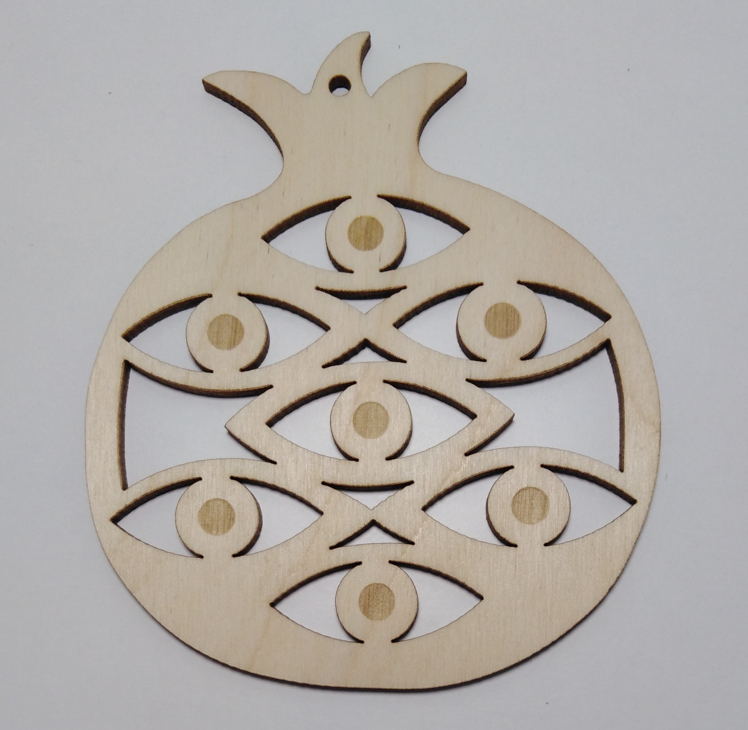 Ρόδι διάτρητο με μάτια σε χάραξη διάστασης 10cm, σε κόντρα πλακέ σημύδα πάχους 3mm