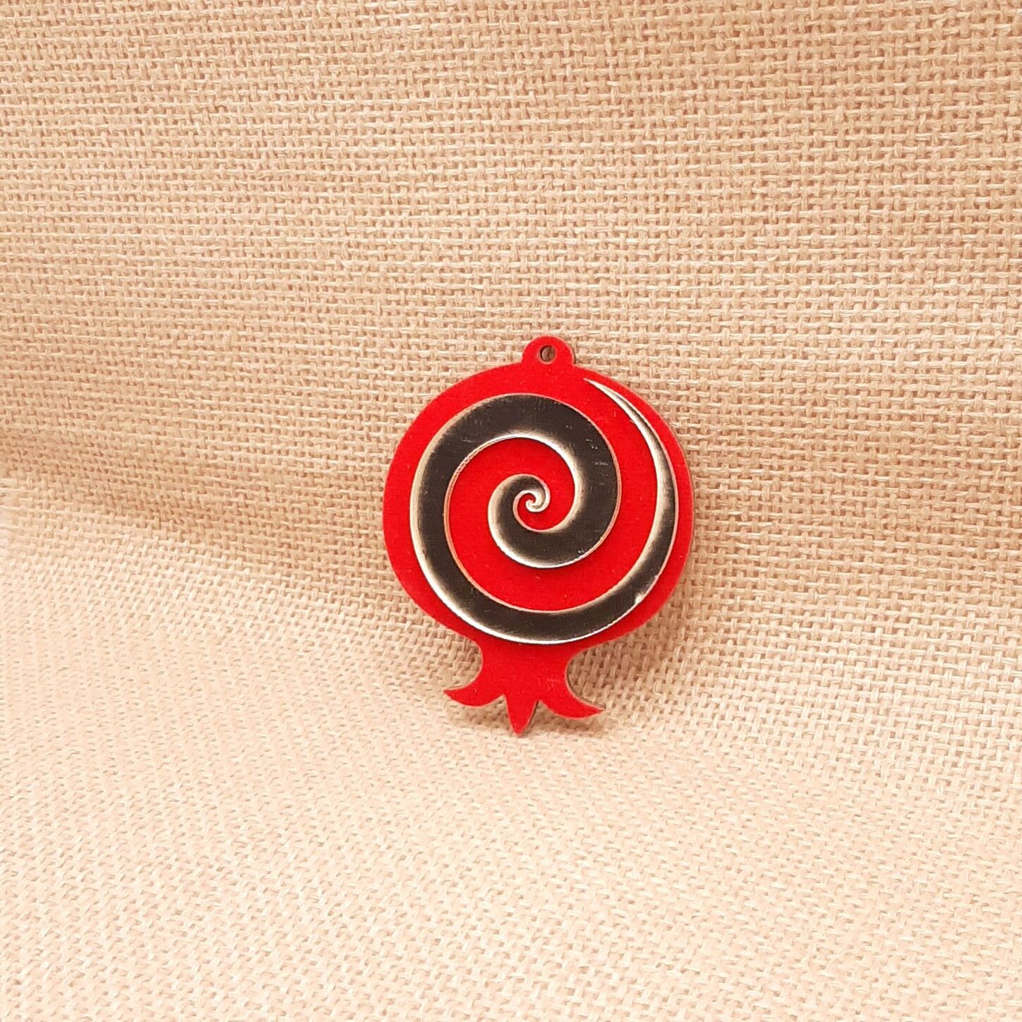 Ρόδι σπείρα, με πλάτη ύφασμα σε κόντρα πλακέ σημύδα πάχους 3mm και σπείρα καθρέφτης χρυσός.