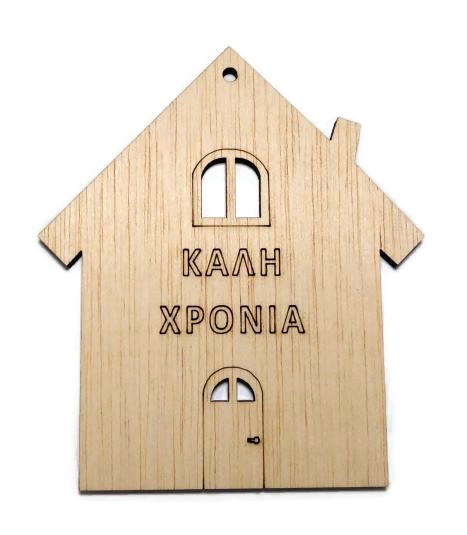 Σπίτι 10cm με σκάλισμα “ΚΑΛΗ ΧΡΟΝΙΑ” , σε ξύλο κόντρα πλακέ ilomba πάχους 4mm
