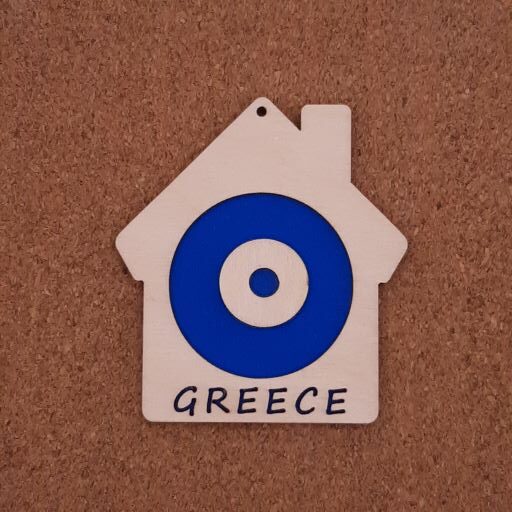 Σπίτι 9χ8cm με μάτι διπλό βαμμένο, σε κόντρα πλακέ σημύδα πάχους 3mm.