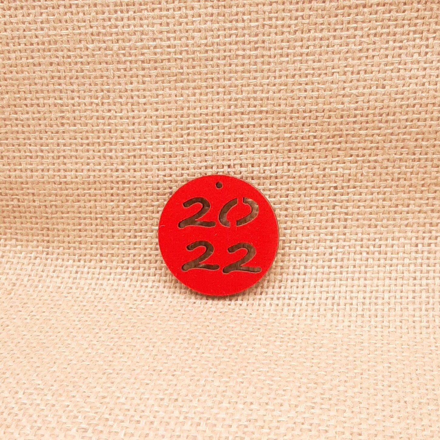 Στρογγυλό “2022”  διάτρητο με ύφασμα,σε ξύλο κόντρα πλακέ σημύδα πάχους 3mm.