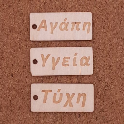 Ταμπελάκι  με χάραξη ευχής “Υγεία”-“Τύχη”-“Αγάπη”  διάστασης 4,5x2cm ,σε ξύλο κόντρα πλακέ σημύδα πάχους 3mm