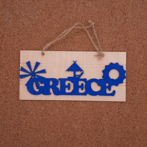 Ταμπελάκι-Greece διάστασης 15x12cm διπλό βαμμένο, σε κόντρα πλακέ σημύδα πάχους 3mm