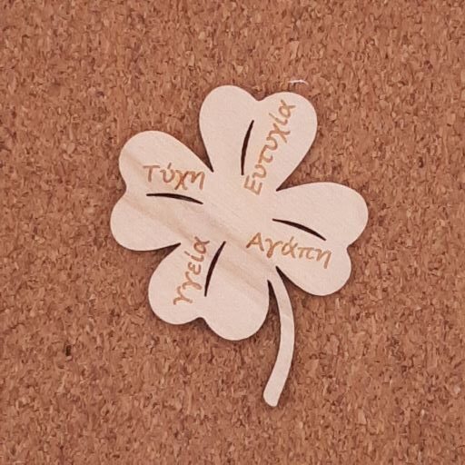 Τετράφυλλο διάστασης 5χ5cm με χάραξη “ευχή” σε κόντρα πλακέ σημύδα πάχους 3mm.
