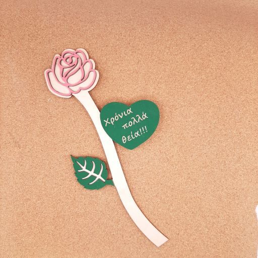 Τριαντάφυλλο διάστασης 11χ22cm βαμμένο με χάραξη αφιέρωσης,σε ξύλο κόντρα πλακέ σημύδα πάχους 3mm