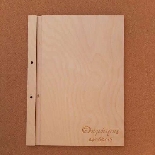 Βιβλίο ευχών 22χ30cm σε κόντρα πλακέ σημύδα πάχους 3mm με χάραξη ονόματος και ημερομηνίας.